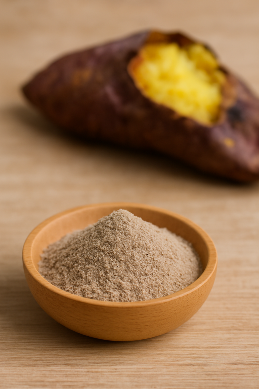 本商品は、焼き芋ペースト製造工程で廃棄されていた皮と芋の間の部分を丁寧に乾燥・粉砕し、パウダー状に仕上げたアップサイクル原料です。